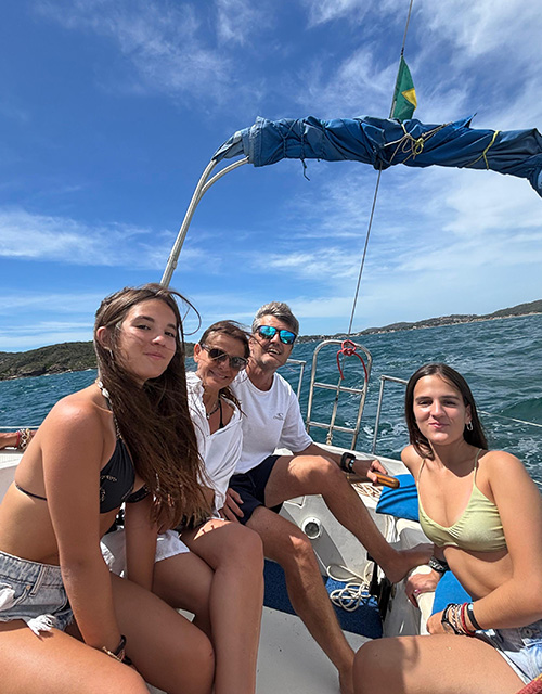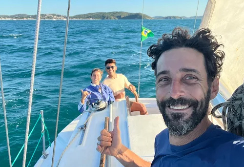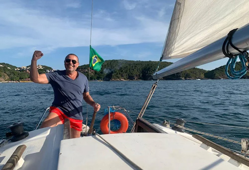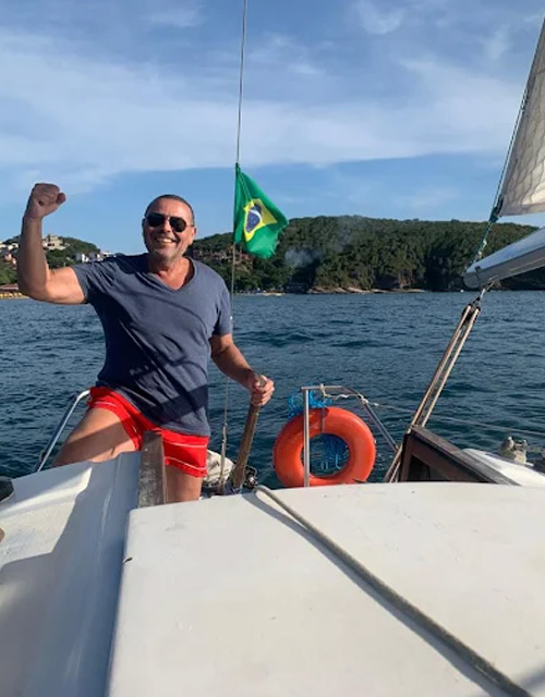 En 2011, sin saber nada, compré mi primer velero, el Atoll 23 “Vida de Marisco”, y mi vida cambió. Aprendí a navegar y bucear con grandes referentes locales y realicé travesías entre Búzios, Salvador, Río de Janeiro, Angra dos Reis y Sergipe, sumando experiencia día tras día en el mar.